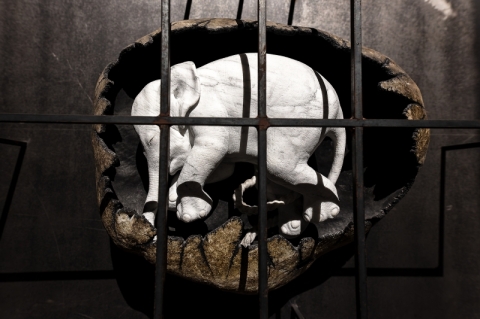 • First Baby, ein Symbol menschlicher Verletzlichkeit, ein Marmorneugeborenes, das zu pulsieren scheint